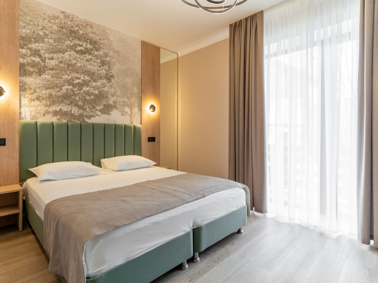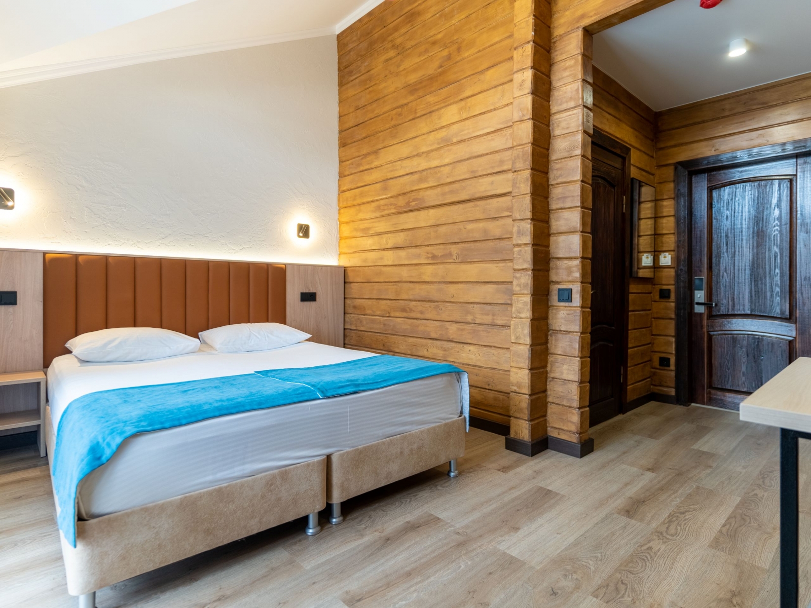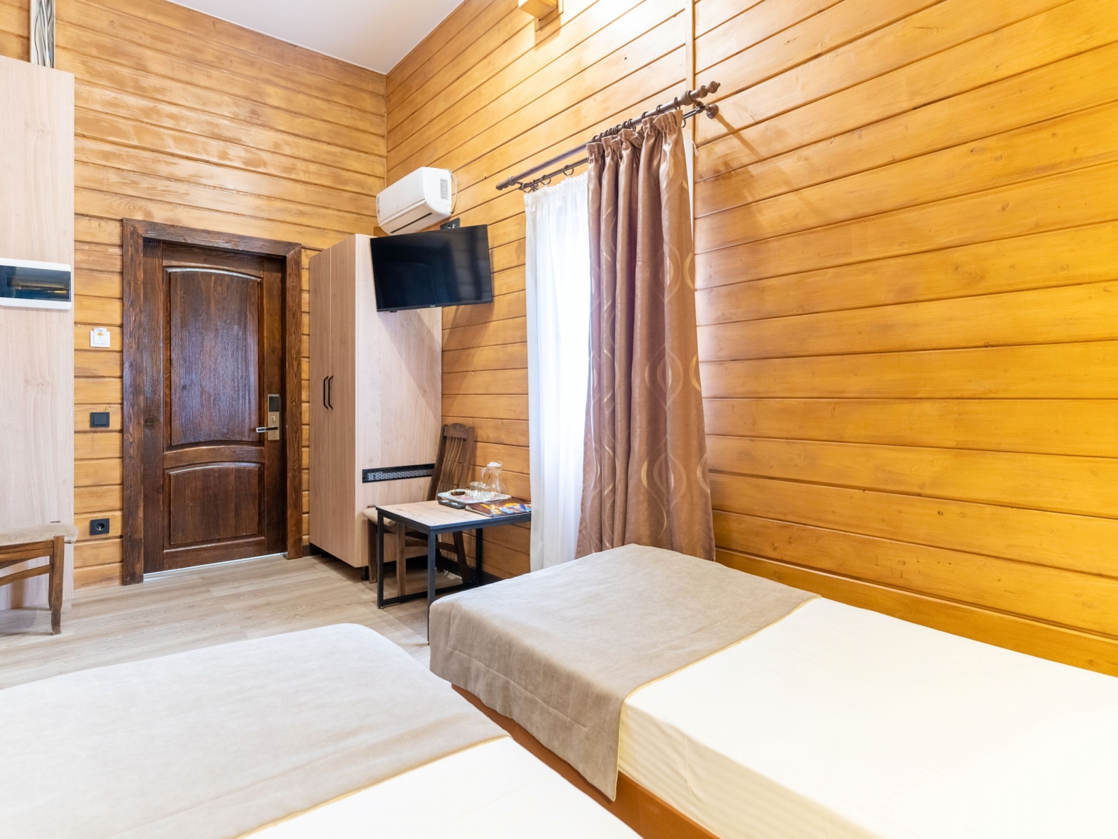 Семейный 2-хкомнатный с балконом рассчитан на 4 человек - в одной комнате двуспальная кровать, во второй - раскладной диван и кресло. В номере имеется душ, туалет, телевизор, холодильник, кондиционер и вся необходимая мебель. Отопление в номере с помощью теплых полов