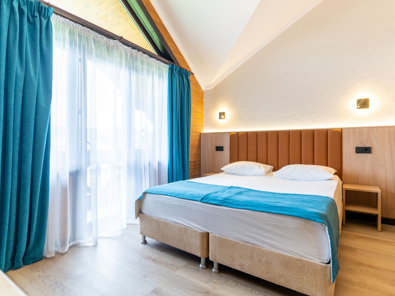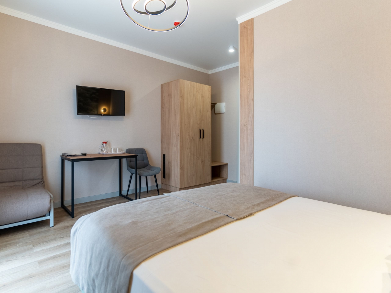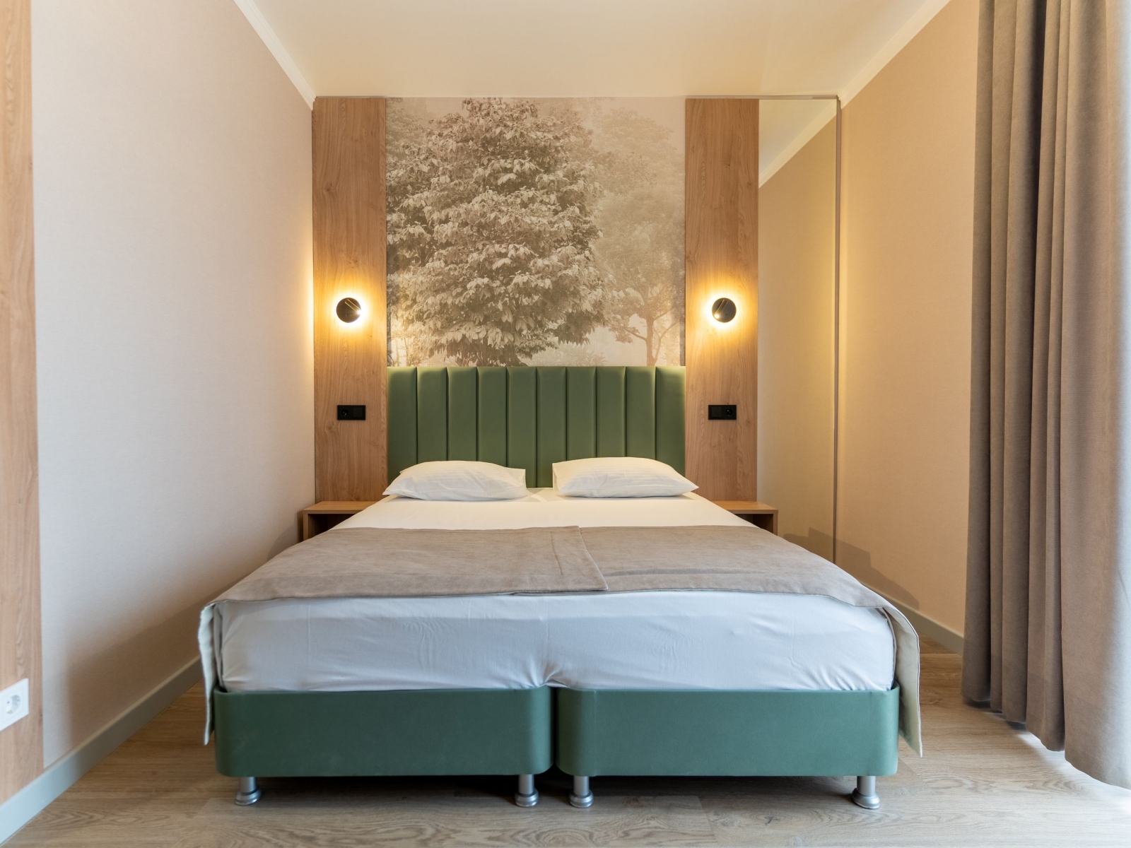 Семейный 2-хкомнатный с балконом рассчитан на 4 человек - в одной комнате двуспальная кровать, во второй - раскладной диван и кресло. В номере имеется душ, туалет, телевизор, холодильник, кондиционер и вся необходимая мебель. Отопление в номере с помощью теплых полов