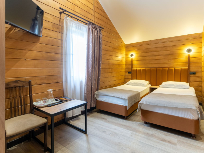 Номер категории «Семейный номер» — Семейный 2-хкомнатный с балконом рассчитан на 4 человек - в одной комнате двуспальная кровать, во второй - раскладной диван и кресло. В номере имеется душ, туалет, телевизор, холодильник, кондиционер и вся необходимая мебель. Отопление в номере с помощью теплых полов